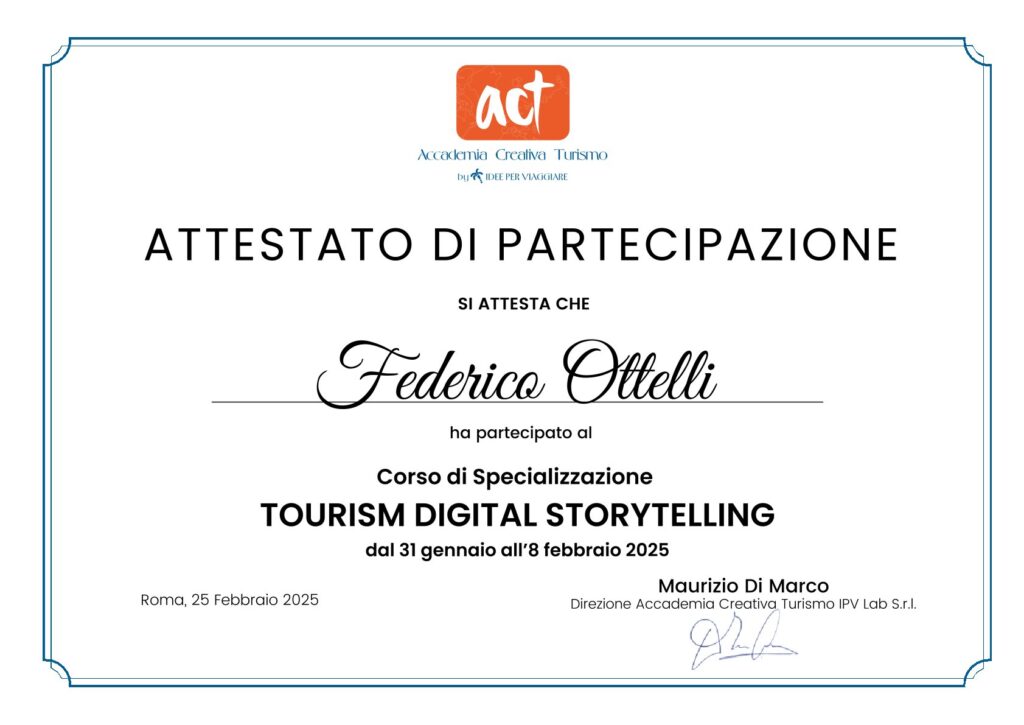 Grazie alla formazione specialistica, conseguita presso Accademia Creativa Turismo, e a un approccio innovativo ed esperienziale, possiamo progettare per voi itinerari esclusivi e personalizzati. Pronto a partire?